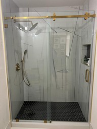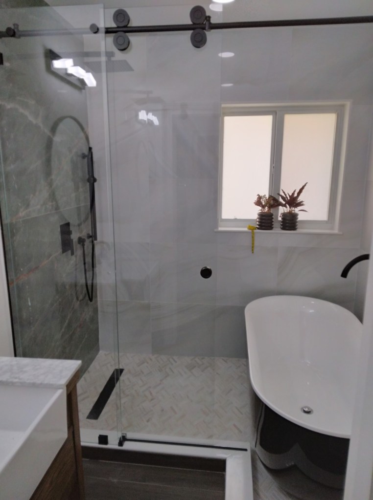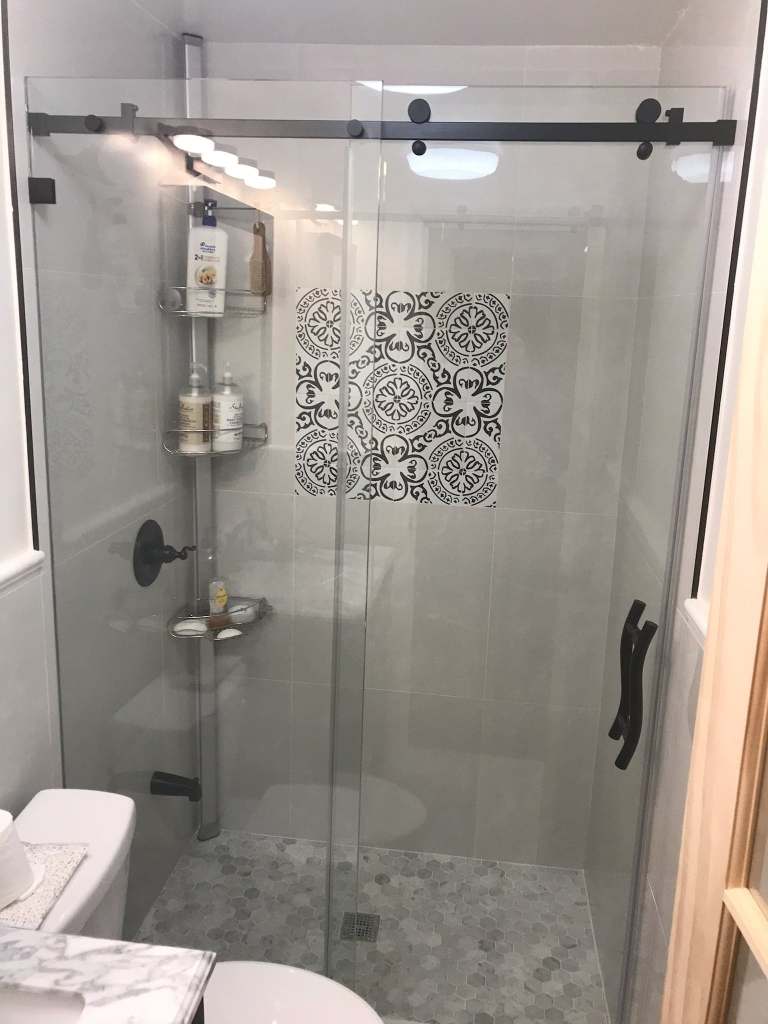 - Space-saving: Sliding shower doors slide along a track, which means they don’t swing open like hinged doors. This makes them a great space-saving option for smaller bathrooms, where there may not be enough space for a hinged door to swing open and closed.